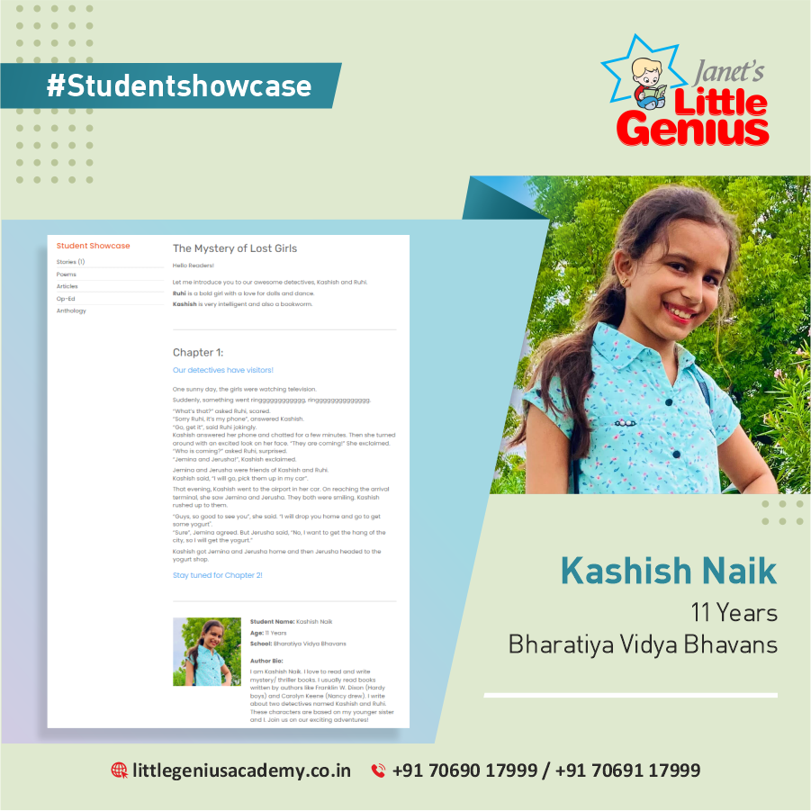 Meet Kashish Naik, an 11 year old student who loves to read. She writes about two detective sisters, whom she has modelled on herself and her sibling!